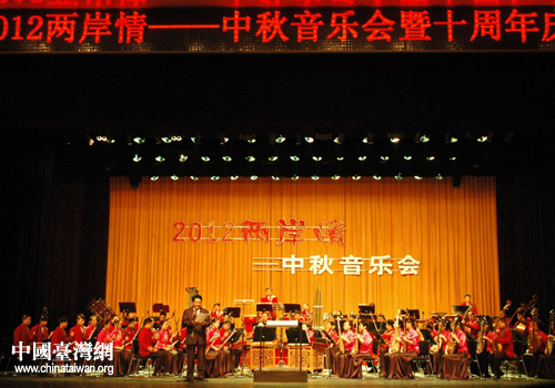 中国台湾网9月29日合肥消息 9月28日晚,“2012两岸情——中秋音乐会暨十周年庆典”在安徽艺术剧场举行,来自台北、高雄、台南、台中的二十多位台湾音乐人和安徽省民族管弦乐团、安徽交响乐团的音乐人同台演出,为合肥观众献上了一台精彩的中秋音乐会。