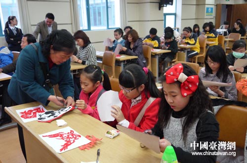 两岸小朋友一起参加剪纸培训。(图片来源:滁州台办)