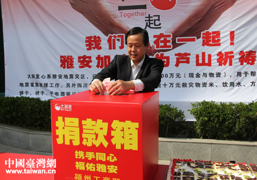 市红十字会有关负责人表示,震灾无情,人间有爱,善款是传递爱心的载体,大润发作为台资企业体现了关爱灾区、回报社会的责任感和人道主义精神。市红十字会希望大家积极为四川雅安地震灾区捐款,救助灾区灾民。(中国台湾网阜阳市台办通讯员 陈轶)