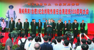 国务院台办、国家文物局有关负责同志,台湾方面有关代表,省直有关单位负责同志和社会各界代表300余人参加大会。9月24日,海峡两岸(合肥)纪念刘铭传首任台湾巡抚130周年大会在肥西县铭传乡刘铭传故居举行。