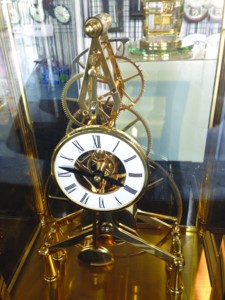 黄金钟、老爷钟……德国原装、台湾工艺的各式钟表也是本届台博会的亮点,“这是台湾钟表第一品牌。”组委会介绍说。记者看到,四台黄金色的桌钟用金属玻璃壳罩住、极其富贵,“这是德国原装的八音簧、细马摆轮机芯。”展区负责人介绍,可选择三首曲目用作报时音乐,价格五六万元一台。更贵的是高2.2米的老爷钟,花梨木纯手工打造,“配件都是德国原装,但由台湾师傅手工打造,可传世四五代不坏。”