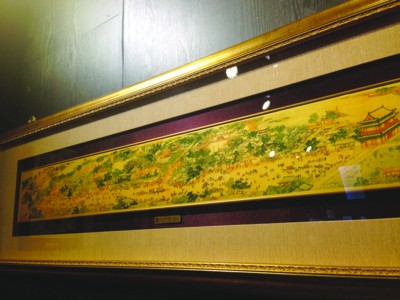 “创意台湾”是本届博览会的亮点,记者昨在一家企业展厅中看到,挂在墙体的都是黄金底色的彩画,上面的图案多为名作或出自名人之手。“我们这叫黄金油画,是台北国立故宫博物院独家授权,并和历史博物馆和台北市立美术馆合作的,画作全部来自他们。”展区负责人介绍,画作的底材是24K金,通过热烘压制而成,“就像一张黄金纸,然后在其上用特殊的颜料作画。”展厅内有郎世宁的《八骏图》,也有清版的《清明上河图》,前者售价18800元,后者则要29800元。