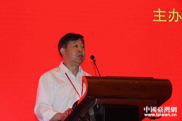 27日,中国环保产业协会副秘书长腾建礼在“2015第二届海峡两岸节能环保产业论坛”上发言。(中国台湾网 高嘉泽 摄)