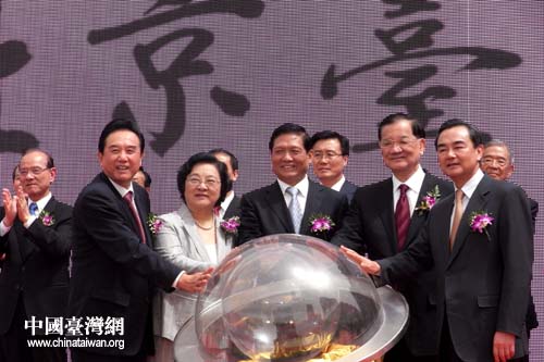 5月7日,北京首条台湾文化主题商业街——北京台湾街正式开街。中国国民党荣誉主席连战,中共中央政治局委员、中共北京市委书记刘淇,全国政协副主席、台盟中央主席林文漪,中共中央台办、国务院台办主任王毅,海协会会长陈云林等为台湾街开街。(中国台湾网 芜同 摄)