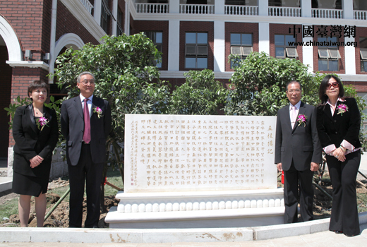 5月6日,北京台湾街标志性建筑“五桂楼”落成揭牌仪式在北京举行。图为出席仪式的两岸嘉宾为碑刻《五桂楼记》揭牌并合影。(中国台湾网 田云鹏 摄)
