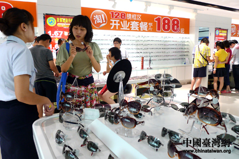 台资眼镜专卖店“宝岛眼镜”首家全国航母店18日在京开业,推出一系列促销活动吸引顾客(中国台湾网 李徽 摄)