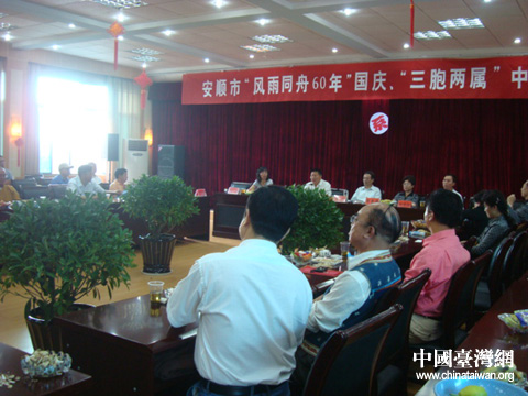 中国台湾网9月28日安顺消息 为庆祝新中国成立60周年,2009年9月24日,安顺市委统战部、市台办,市侨联举行“风雨同舟60年”国庆座谈会、“三胞两属”中秋茶话会暨文艺联欢活动。