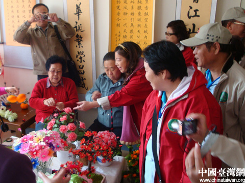 台北里长为色彩艳丽的绢花吸引,纷纷拿出相机拍摄。图片来源:青岛晚报