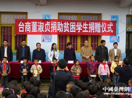 中国台湾网10月27日安顺消息 2009年10月20日,受台商董淑贞女士的委托,贵州省台联秘书长周飞月深入到关岭县顶云乡新华小学代表董女士向该校19名贫困学生转交了每人500元,共计9500元的捐款。