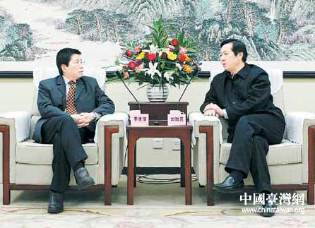 信阳市长郭瑞民会见台湾同德地产集团董事长李世杰(左)。图片来源:信阳市台办