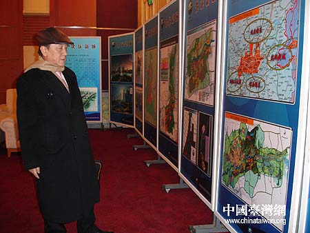 台湾新党主席郁慕明仔细观看沈抚新城规划。图片来源:抚顺市台办
