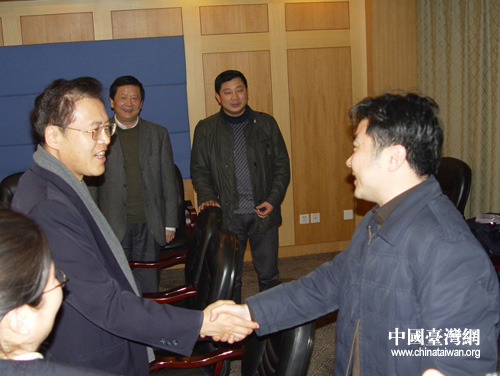 什邡市委副书记、市长李卓会见王端正。图片来源:德阳市台办