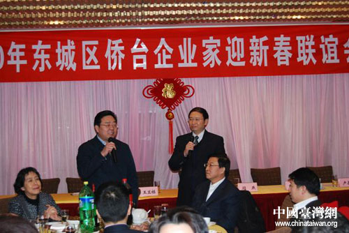 区委副书记、政法委书记常卫(左一)代表区委区政府向台商、侨商致以新春祝福。图片来源:东城区台办