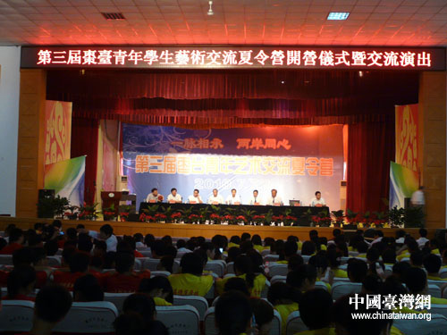中国台湾网8月4日枣庄消息 日前,“一脉相承·两岸同心——第三届枣台青年艺术交流夏令营”开营仪式在山东省枣庄师范学校举行,中共枣庄市委常委、统战部长陈伟,枣庄市台办、枣庄市教育局负责同志出席夏令营开营仪式。