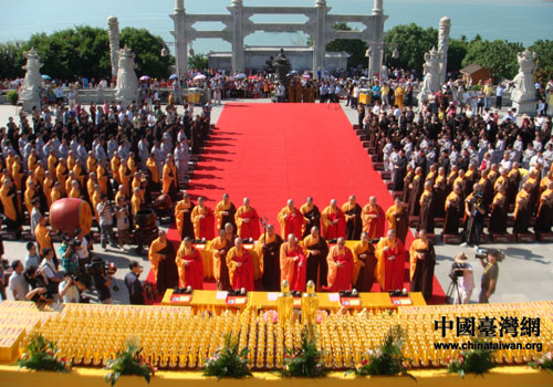开光法会由普陀山佛教协会会长、普济禅寺方丈道慈和尚与台湾传孝长老、圆尘法师共同主持,来自两岸的佛教界人士和信众共1000余人共同见证了这一具有历史意义的时刻。