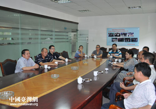 湖北省十堰市政协副主席王庆华一行在台企阿里山公司召开座谈会,了解公司运转、台商生活情况(图片来源:十堰市台办)