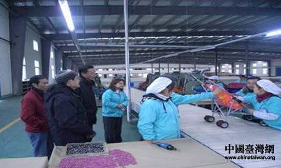 正在该公司调研的黄石市台办陈推主任、李朝鹏副主任向黄协理、麦采筠经理等负责人表示热烈的祝贺,并亲临公司生产车间参观考察。据黄协理介绍,该公司预计可年产童车300万台,可安置700余人就业,而公司目前仅招收了200余名员工,还需大量招收数百名缝纫工。