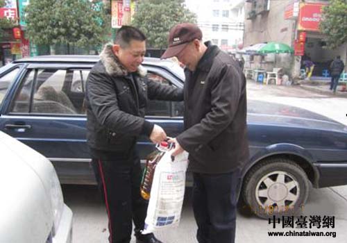 都匀市台办主任蒙洪昌慰问台胞蔡文成先生(图片来源:都匀市台办)