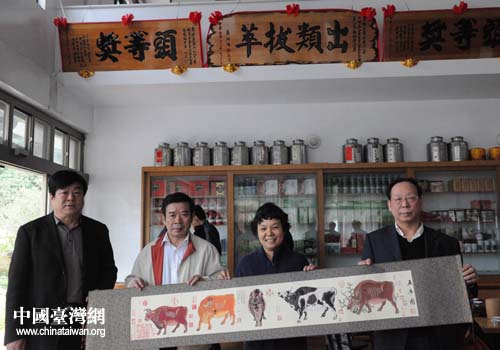 刘德旺称赞赖丽霞的拼搏创业精神,特地赠送赖丽霞一幅河北特色手工艺品“五牛图”剪纸,祝福她生意兴隆,牛气冲天!(中国台湾网特约通讯员)