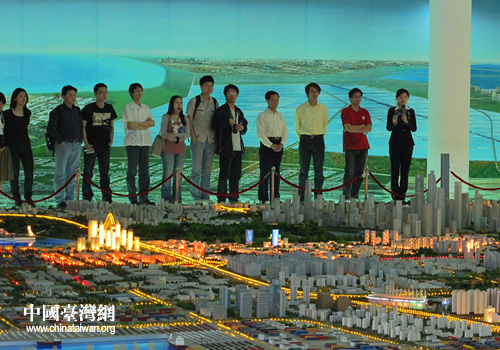 交流团参观滨海新区规划建设展馆(图片来源:天津台办)