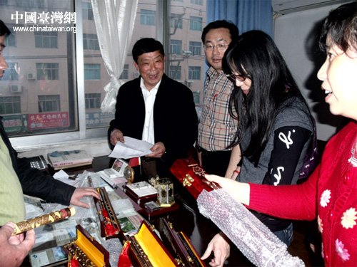 严守仁、严淑珍一行先到田坪镇金竹村祭祖,之后在玉屏县政协副主席、统战部长罗友元、副部长台办主任杨芳等人的陪同下,参观了玉屏县箫笛厂。在玉屏箫笛厂,严守仁、严淑珍一行兴致勃勃地参观了箫笛陈列馆,深入箫笛厂制作车间,观看了箫笛的选料、钻孔、雕刻等制作过程。严守仁、严淑珍对玉屏县灿烂的箫笛文化、精美的箫笛产品赞不绝口,并当场购买了几副箫笛带回台湾。