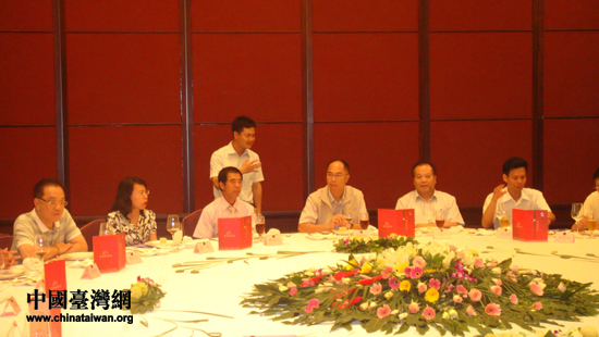 佛山市委常委、南海区委书记邓伟根(右三)宴请参访团一行(图片来源:广东省台办)