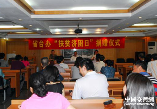 中国台湾网7月5日广州消息 日前,广东省台办举行“扶贫济困日”活动动员大会暨捐赠仪式。广东省台办副主任蒋长芳作活动动员,省台办主任陈国兴等办领导及全办干部职工参加了动员并踊跃参加捐赠活动。