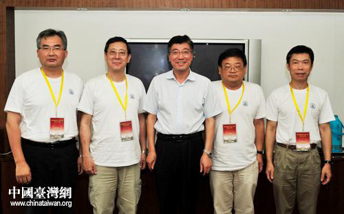 西北农林科技大学校长孙其信与台湾学生带队老师合影(图片来源:陕西省台办)