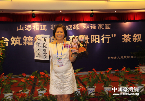 “在台筑籍新娘爽爽贵阳行”活动在筑启动,台湾高雄贵州同乡会理事长陈光凤致辞,并向活动主办方赠送礼物,寓言两岸婚姻和谐美满(贵阳市台办 李庆斌 摄)