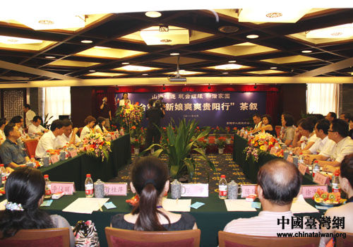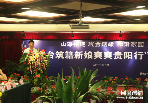 中国台湾网7月7日贵阳消息 7月5日下午,“在台筑籍新娘爽爽贵阳行”活动在筑启动。贵州省台办副主任韩支前、市人大副主任丁海、市政协副主席黄乃铸等领导出席会议。台湾高雄贵州同乡会理事长陈光凤、花莲贵州同乡会理事长王贵娥等在台筑籍新娘及亲属应邀参会。中国知名作家李宽定先生、贵州大学教授许鹿女士等婚姻问题专家,市直有关部门负责人等近80人参加启动仪式。市委统战部副部长、市台办主任李静主持启动仪式。