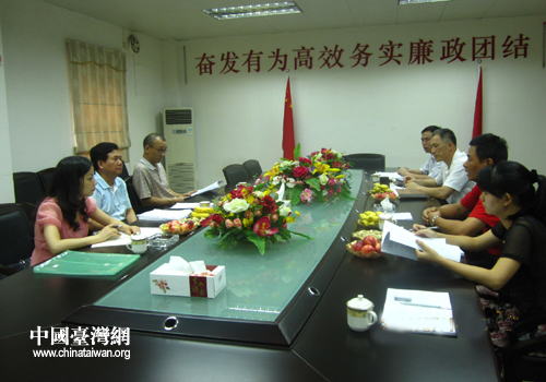 中国台湾网7月19日广州消息 7月14日至15日,广东省台办副主任蒋长芳一行4人到江门市调研,并与江门市委台办有关人员进行了座谈。