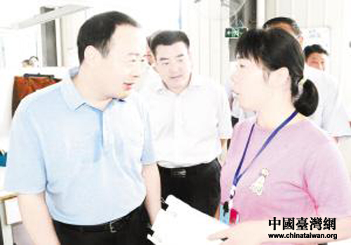中国台湾网7月27日周口消息 7月25日,河南周口市委书记毛超峰来到年产160万件服装的周口市台南制衣有限公司生产车间,察看项目进度,与企业负责人一起研讨解决生产建设中遇到的难题。周口市委常委、市委秘书长李明方,副市长刘国连、陈志伟陪同考察。