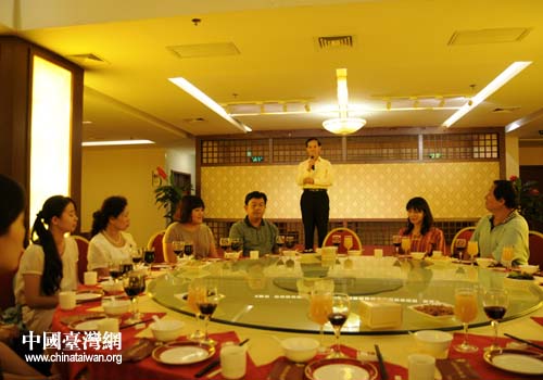天津市台办设宴欢迎参加津台大学生合唱周的台湾师生,图为天津市台办副主任、市海峡两岸民间交流促进会常务副会长郭慧勤致欢迎词(图片来源:天津台办)