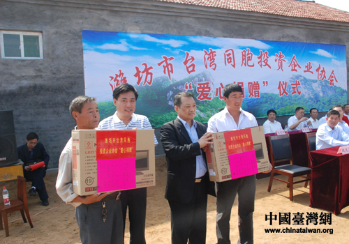 潍坊市台湾同胞投资企业协会“爱心捐赠”仪式。(图片来源:潍坊市台办)