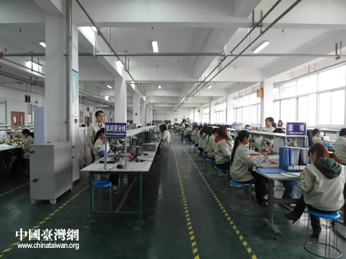 长智光电有限公司员工正在生产线上装配(图片来源:绵阳市台办)
