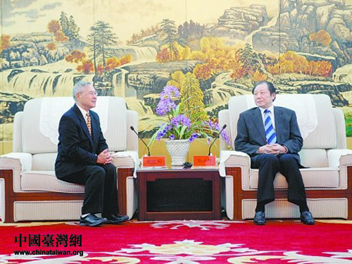 河南省焦作市委副书记、市长孙立坤在焦作市会见台湾奇力新电子股份有限公司副董事长赖源河(图片来源:焦作市台办)