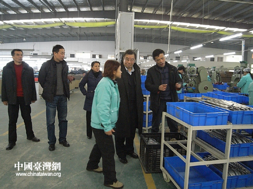 郭化夷一行在参观黄石隆成日用制品有限公司。(图片来源:黄石市台办)