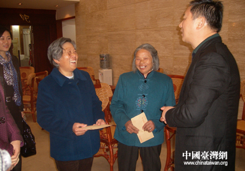 在此次慰问走访活动,他们又分别看望了祖籍于都的原台湾退役上将、台北警备区司令、海防司令金恩庆先生的姐姐金梅英,定居于都的台湾省籍同胞,曾任于都县人民政府副县长、人大副主任的汪金英及其妹妹汪金珍,给每人送上慰问金500元和新春祝福卡。