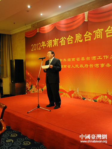 湖南省台胞台商台属新年团拜会在长沙举行,中共湖南省委副书记梅克保致辞。(湖南省台办通讯员曾群辉 摄)