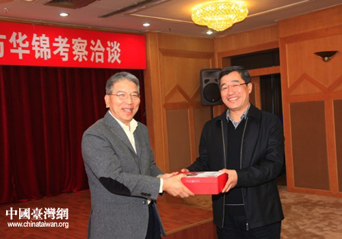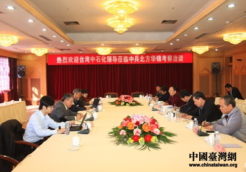 台湾客人和北方华锦集团领导洽谈现场。(图片来源:盘锦市台办)