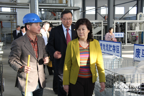 张雪燕一行考察中祈环保科技有限公司。(图片来源:烟台台办)