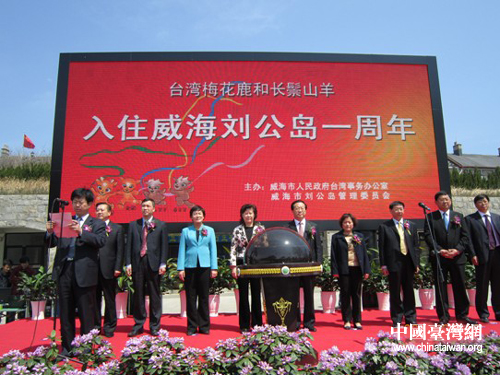 中国台湾网4月20日威海消息 16日,台湾梅花鹿和长鬃山羊来到威海整整一周年了。当日,台湾梅花鹿和长鬃山羊入住一周年纪念活动在刘公岛水师广场举行,300余人参加了此次纪念活动。
