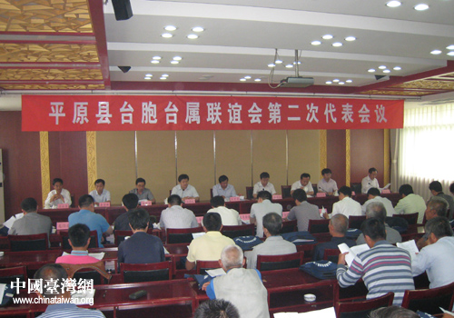 中国台湾网5月16日平原消息 日前,山东德州平原县台胞台属联谊会第二次代表会议在县宾馆召开,市台办副主任、市台联会副会长王卫星,县委副书记赵明国,县委常委、副县长谷举族,县台办全体人员,各乡镇分管负责人及来自各行业的60多位台胞台属代表参加。