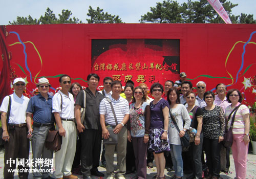 参访团在台湾梅花鹿长鬃山羊纪念馆开馆仪式现场合影留念。(图片来源:威海市台办)