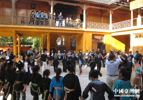 中国台湾网7月19日三都消息 日前,台胞青年千人夏令营的青年学生们来到三都族自治县的水各村。在这里,青年学生们感受到了浓郁的水族风情的迎宾客的礼仪和方式。