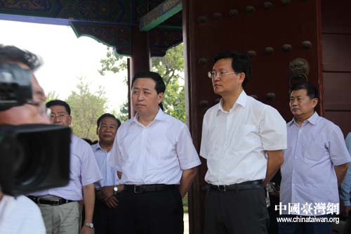 中国台湾网8月9日枣庄消息 8月8日下午,山东省委常委、宣传部长孙守刚到枣庄市视察第二届中国非物质文化遗产博览会暨第三届两岸汉字艺术节筹备工作。省直相关部门领导,枣庄市委书记、市人大常委会主任陈伟,枣庄市委常委、宣传部长张宝民等陪同。