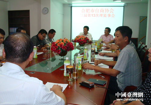 中国台湾网8月24日合肥消息 日前,合肥市台湾同胞投资企业协会三届第13次理监事会在协会会议室举行。市台办主任徐延安、副主任丁素光应邀出席。合肥市台协会长吴安国报告了3月份以来协会各项活动,赵颂杰监事通报协会财务收支报告。与会理监事分别予以审议,并讨论临时动议等。