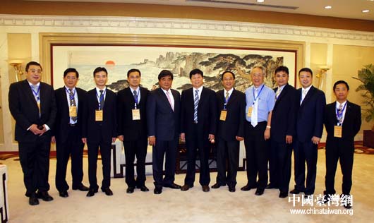 山东省副省长贾万志与台湾客人合影。(图片来源:山东省台办)