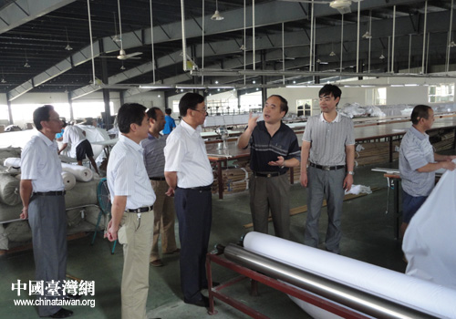 朱德祥一行还实地考察了台资企业——安徽荣第羽绒制品有限公司,听取了企业负责人关于近年来生产经营情况的介绍。朱德祥对荣第公司近年来不断发展壮大给予了充分肯定,表示省、市、县台办将一如既往地为台资企业做好服务,帮助其做大做强。