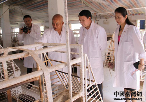 在开阳县,调研组一行在县委副书记覃昆,开阳县政协副主席、县委统战部部长陈刚等陪同下考察了“国家级农业产业化重点龙头企业”——贵阳台农种养殖有限公司。贵阳台协会副会长、台农公司董事长李昭宏对新任主任来筑调研首站选定台农企业非常感动,他认真向周素平一行介绍了饲料生产、销售等生产经营现状和环保改造及废料再利用情况。周素平主任边听边问,除了参观饲料自动输送设备、500立方沼气发电设备外,还不顾天气炎热,径直走进养殖现场查看,他对企业注重开发新技术和注重环保的理念表示肯定,希望可以将猪场的压嘴式自动饮水器、培养小猪的保温毯等小发明为更多农民所了解和共享。